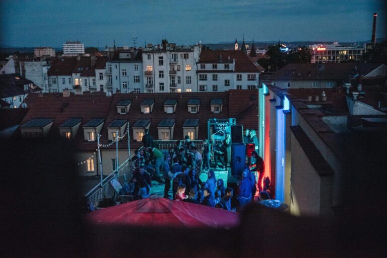 Pohodový večer na střeše s jídlem, proseccem a skvělou atmosférou.